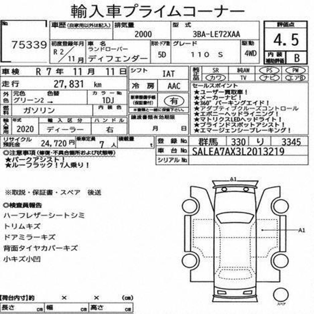 Un-Reg 2020 Land Rover Defender 110 S P300 7 Seater