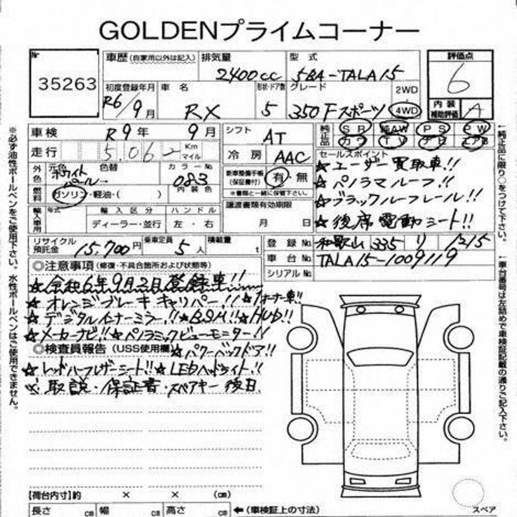Un-Reg 2024 Lexus RX350 F Sport 6A #9119